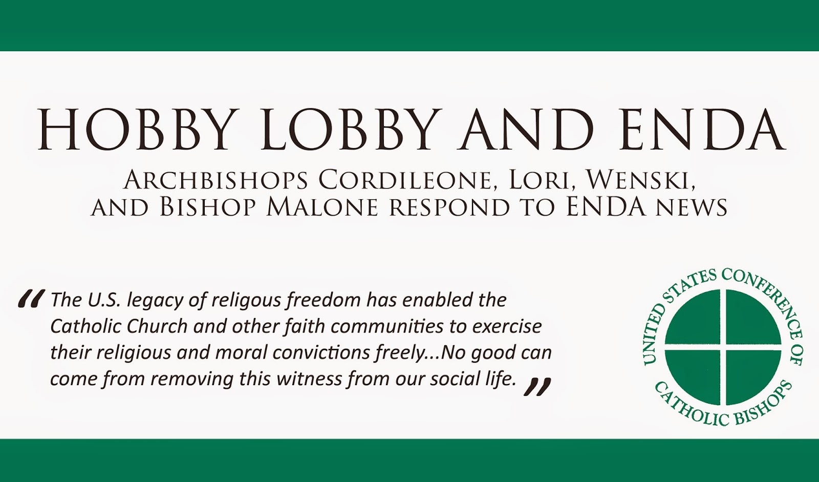 The U.S. legacy of religious freedom has enabled the Catholic Church and other faith communities to exercise their religious and moral convictions freely and thus contribute to the good of all in society. No good can come from removing this witness from our social life.